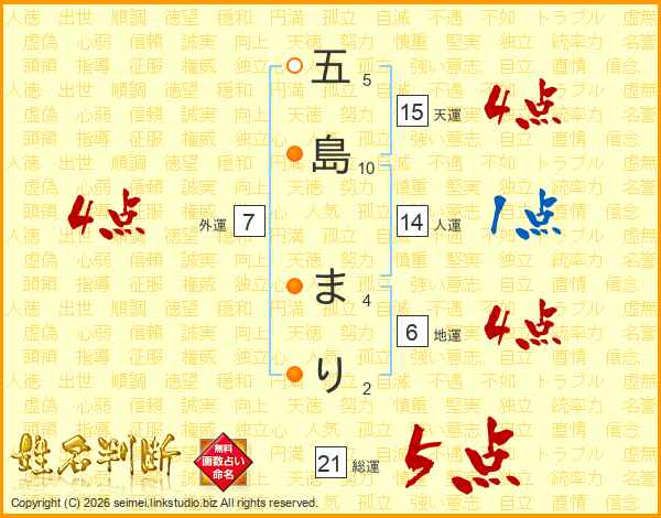 五島まりさんの総運は21画の5点!