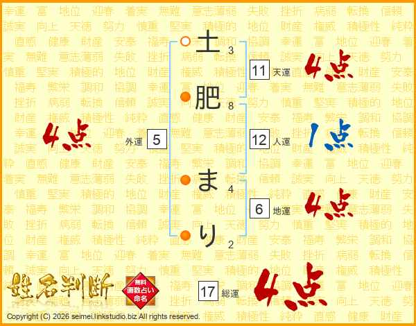 土肥まりさんの総運は17画の4点!