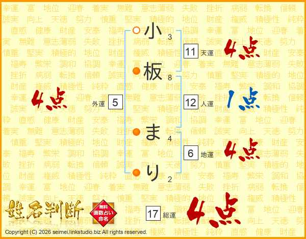 小板まりさんの総運は17画の4点!