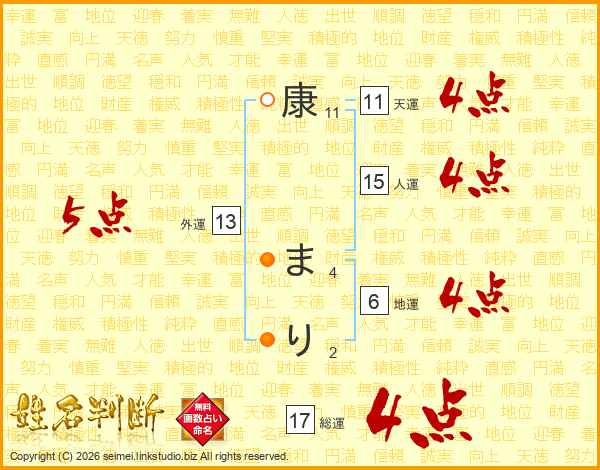 康まりさんの総運は17画の4点!