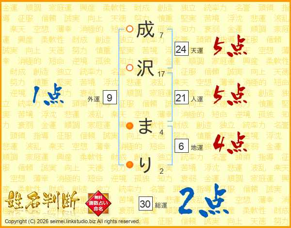 成沢まりさんの総運は30画の2点!