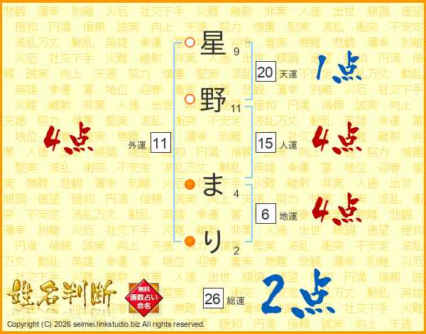 星野まりさんの総運は26画の2点!