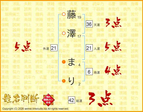 藤澤まりさんの外運は21画の5点!
