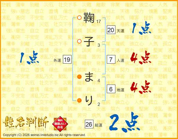 鞠子まりさんの総運は26画の2点!