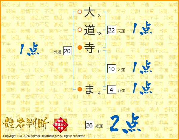 大道寺まさんの総運は26画の2点!