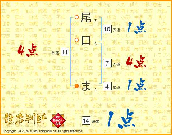 尾口まさんの総運は14画の1点!