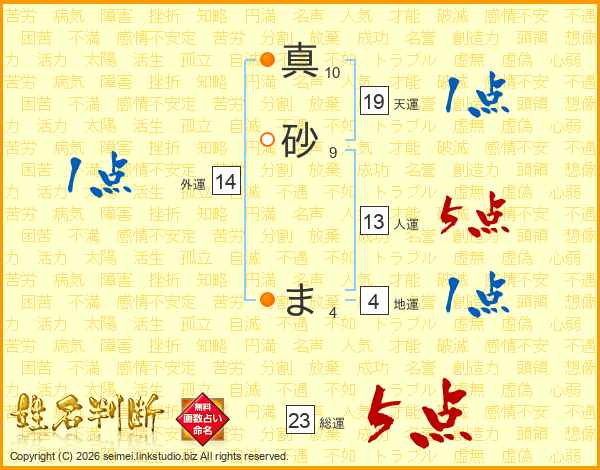 真砂まさんの総運は23画の5点!