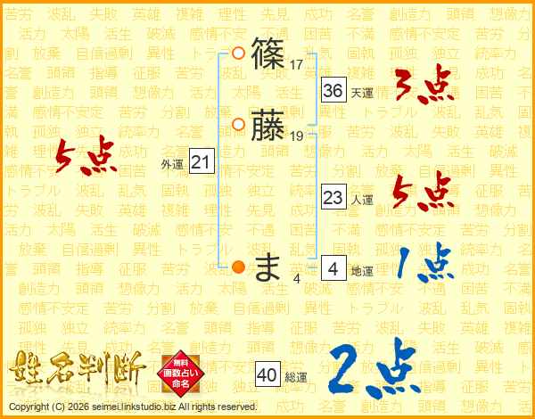 篠藤まさんの人運は23画の5点!