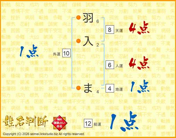 羽入まさんの人運は6画の4点!