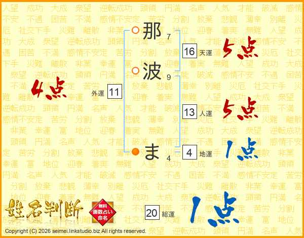 那波まさんの人運は13画の5点!