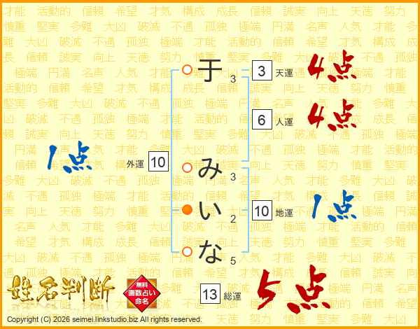 于みいなさんの総運は13画の5点!