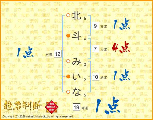 北斗みいなさんの総運は19画の1点!
