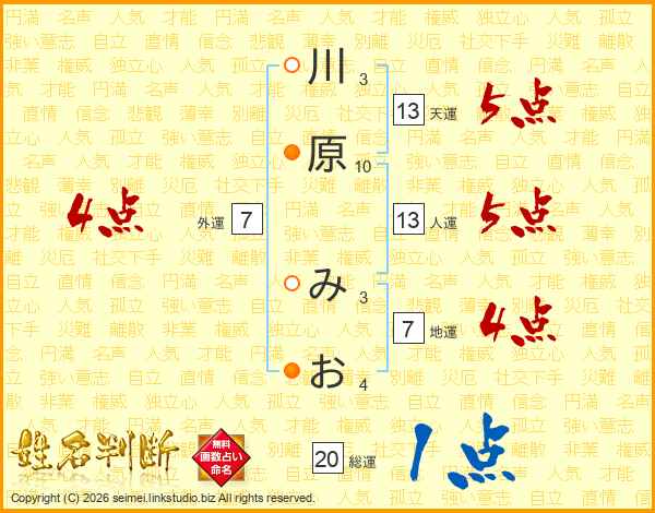 川原みおさんの人運は13画の5点!