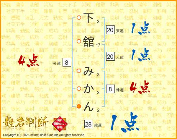 下(3画)舘(17画) み(3画)か(3画)ん(2画)