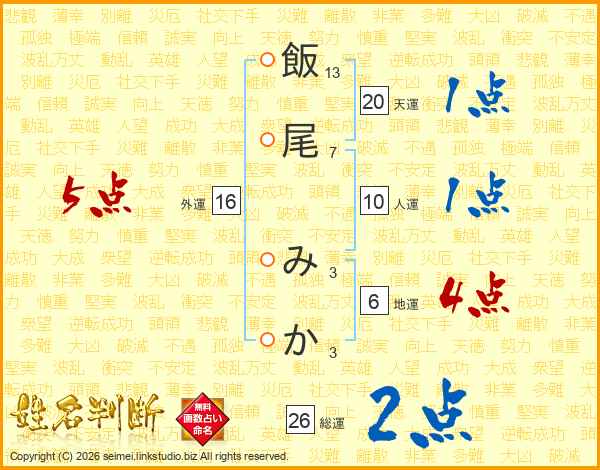 飯尾みかさんの総運は26画の2点!