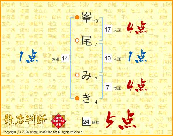 峯尾みきさんの天運は17画の4点!