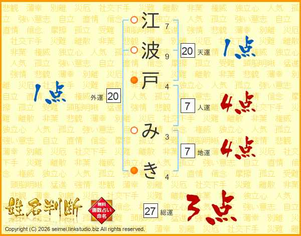 江波戸みきさんの総運は27画の3点!
