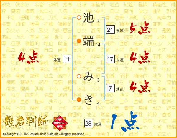 池端みきさんの地運は7画の4点!