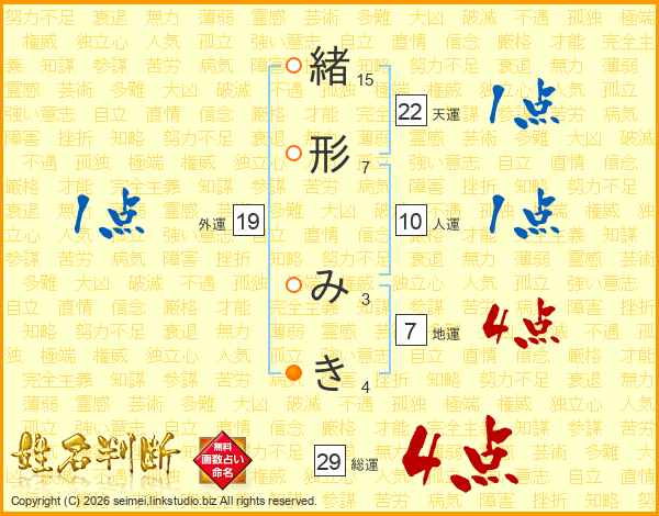 緒形みきさんの総運は29画の4点!