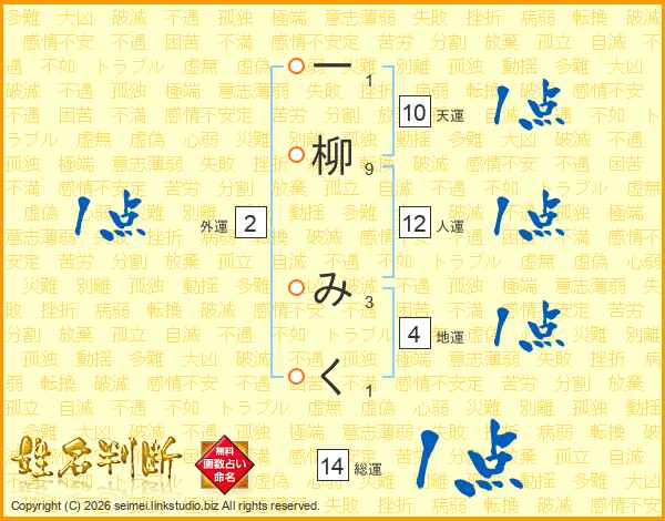 一柳みくさんの総運は14画の1点!