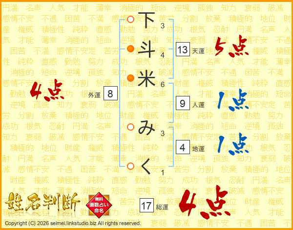 下斗米みくさんの総運は17画の4点!