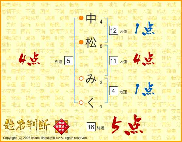 中松みくさんの総運は16画の5点!