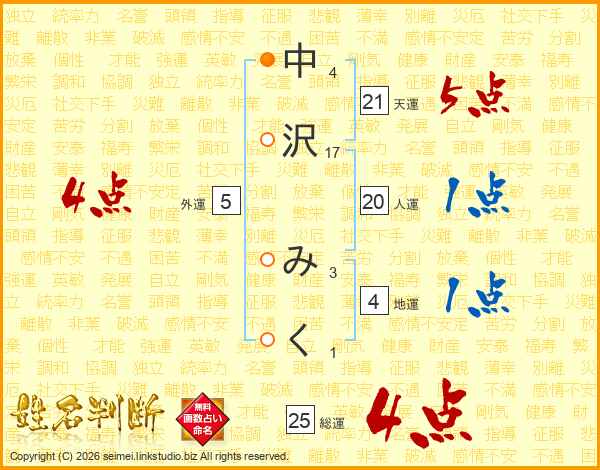 中沢みくさんの総運は25画の4点!
