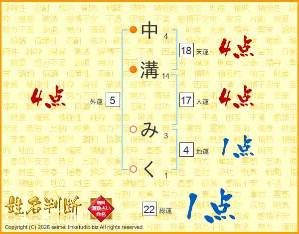 中溝みくさんの天運は18画の4点!
