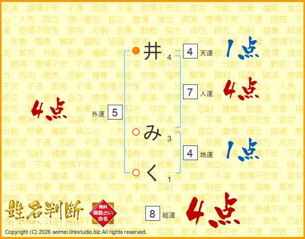 井みくさんの総運は8画の4点!