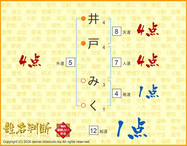 井戸みくさんの人運は7画の4点!