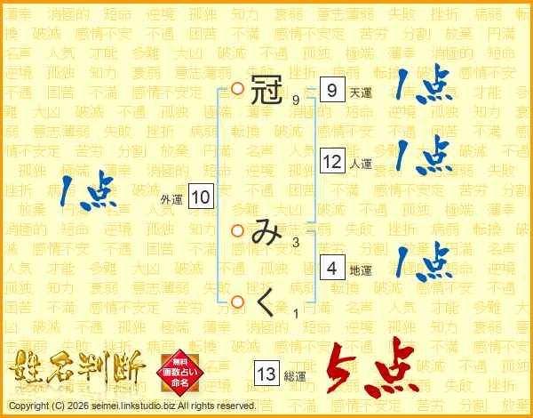冠みくさんの総運は13画の5点!