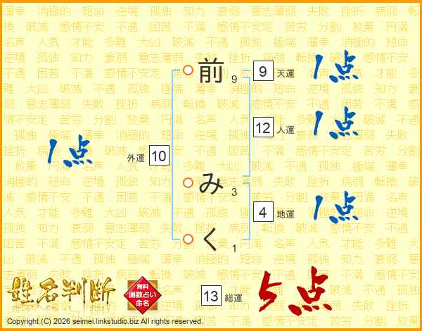 前みくさんの総運は13画の5点!