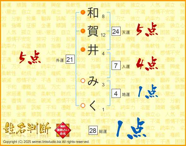 和(8画)賀(12画)井(4画) み(3画)く(1画)