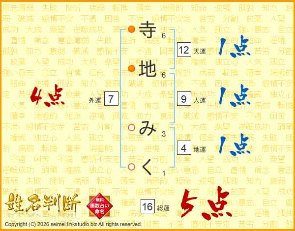 寺地みくさんの総運は16画の5点!