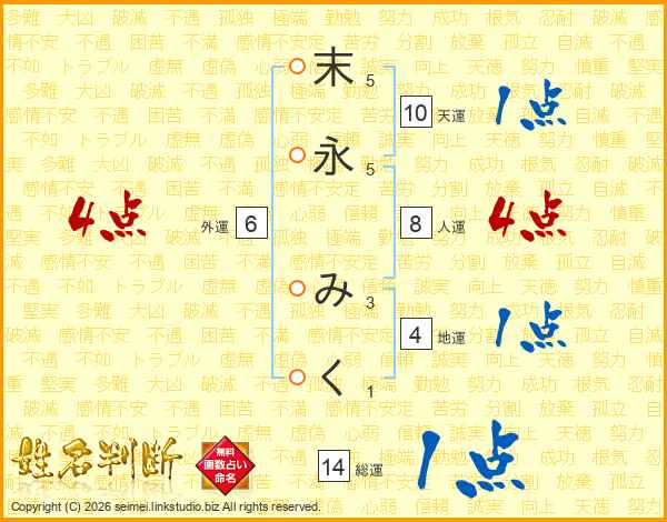 末永みくさんの総運は14画の1点!