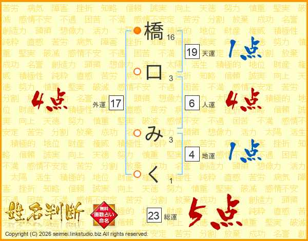 橋口みくさんの総運は23画の5点!