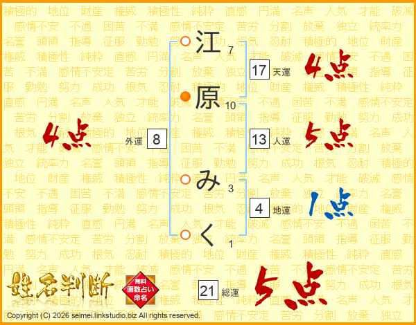 江原みくさんの総運は21画の5点!