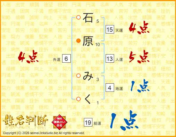石原みくさんの天運は15画の4点!