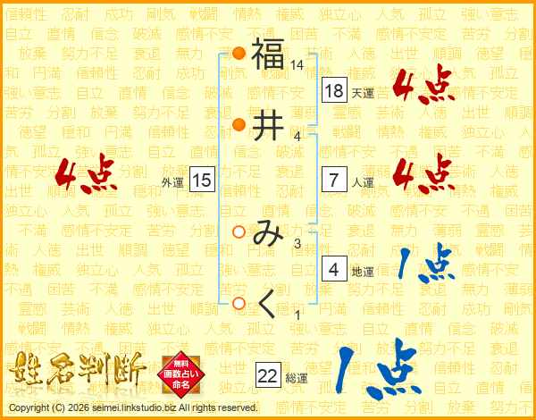 福井みくさんの天運は18画の4点!