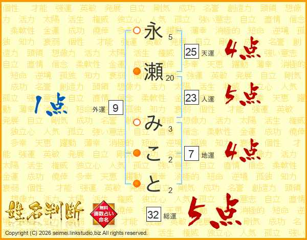永瀬みことさんの総運は32画の5点!