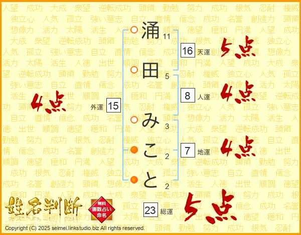 涌(11画)田(5画) み(3画)こ(2画)と(2画)