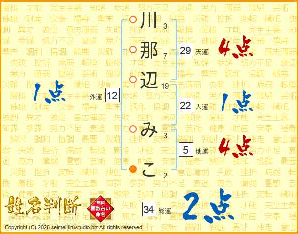 川那辺みこさんの天運は29画の4点!