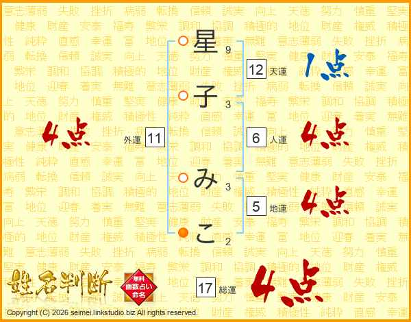 星子みこさんの総運は17画の4点!