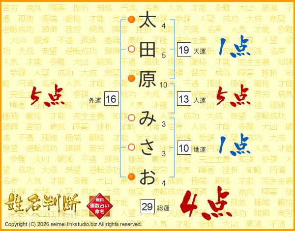 太田原みさおさんの天運は19画の1点!