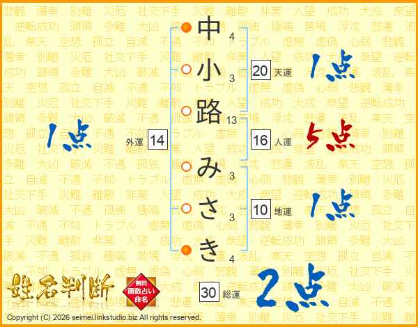 中小路みさきさんの人運は16画の5点!
