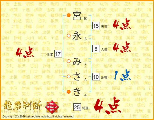 宮(10画)永(5画) み(3画)さ(3画)き(4画)