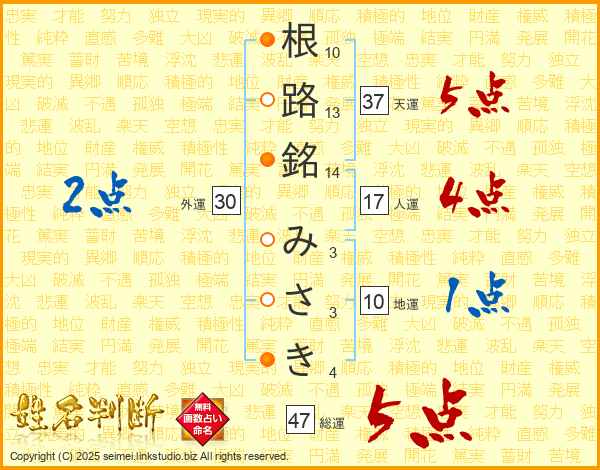 根路銘みさきさんの総運は47画の5点!