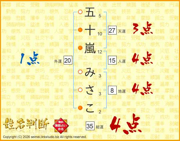 五十嵐みさこさんの総運は35画の4点!