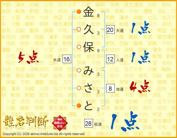 金久保みさとさんの総運は28画の1点!