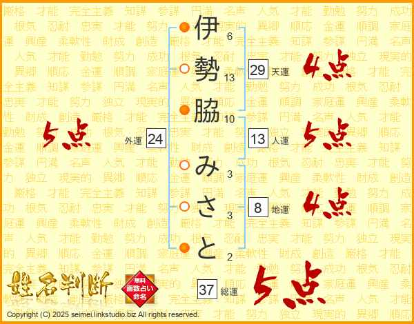 伊勢脇みさとさんの総運は37画の5点!